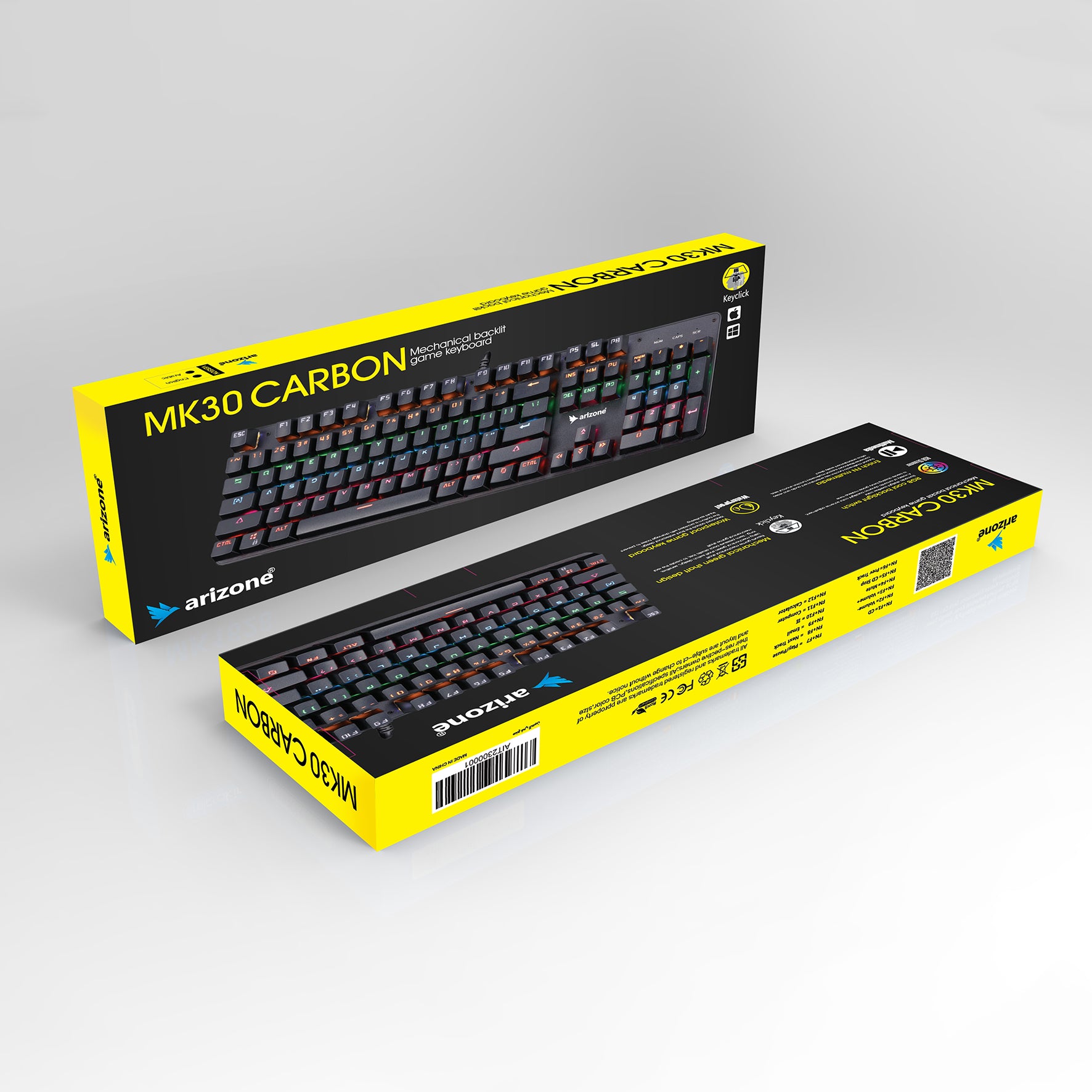 لوحة مفاتيح ميكانيكية Arizone® MK30 Carbon ذات إضاءة خلفية للألعاب لوحة مفاتيح ميكانيكية باللغة العربية / الإنجليزية 104 مفتاحًا