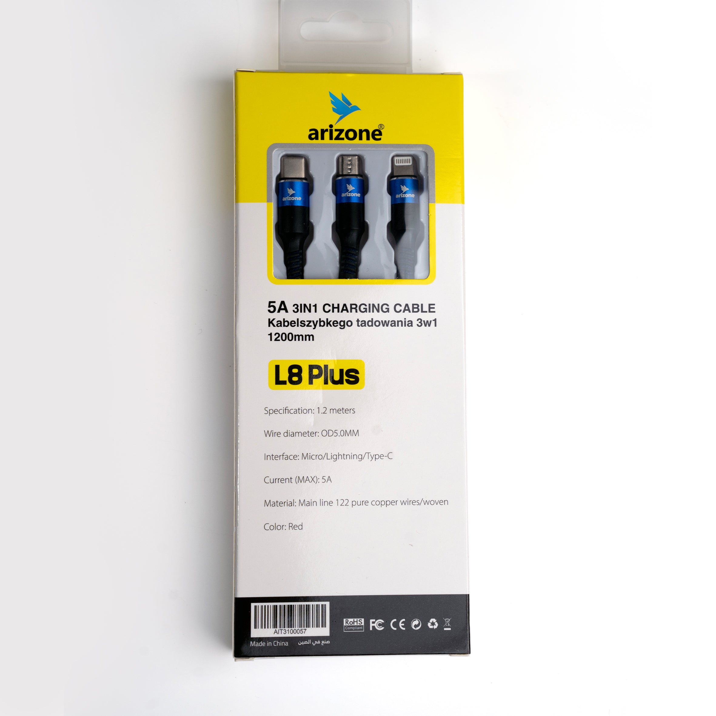 ARIZONE CHARGER CABLE L8 PLUS 3-in-1 5A 120M