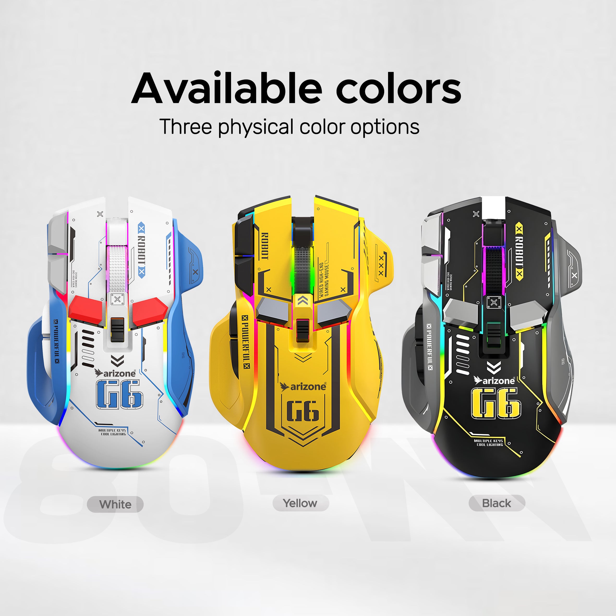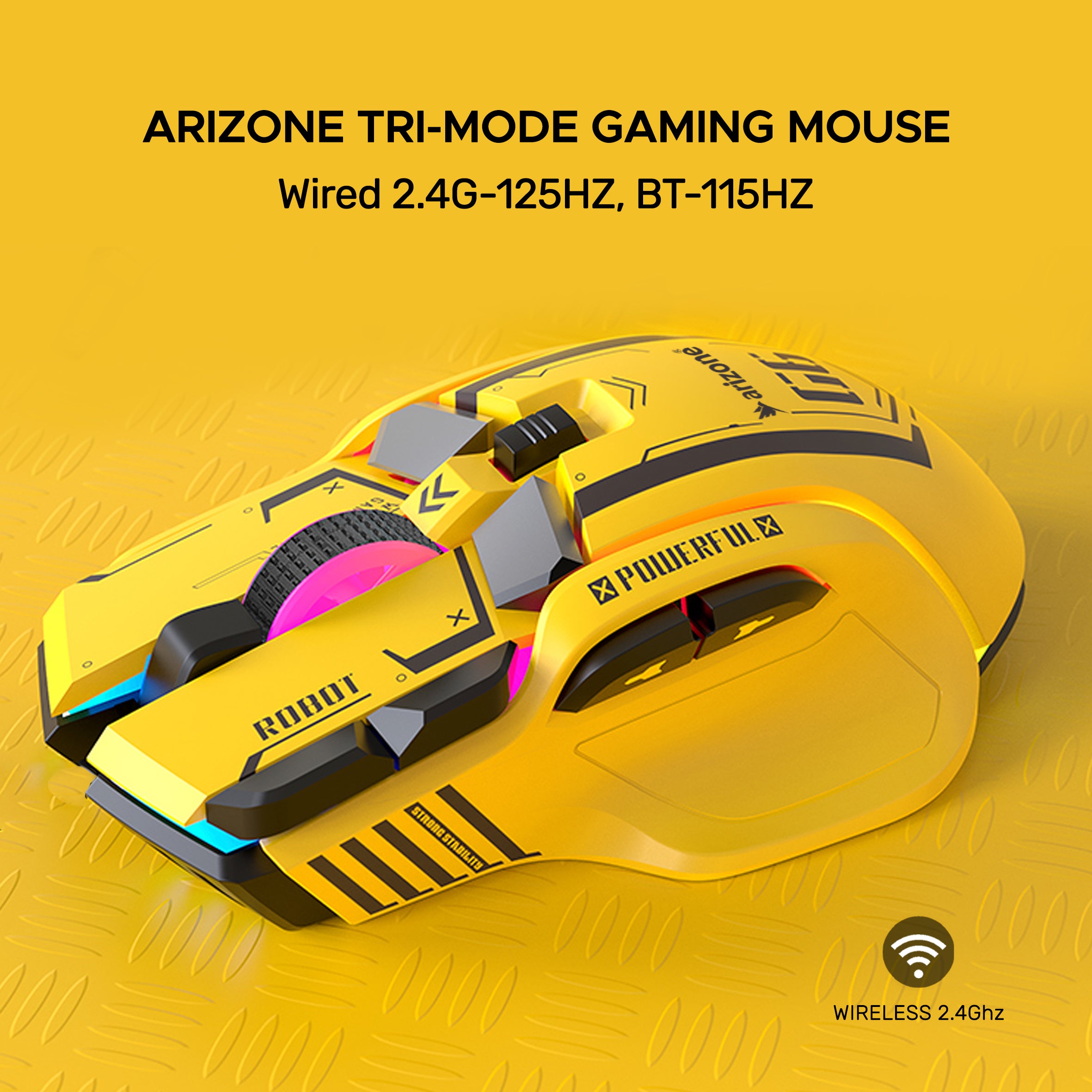 Unleash precision and power with the Arizone Tri-Mode Gaming Mouse, built for gamers who demand performance and versatility. Switch seamlessly between Bluetooth, 2.4GHz wireless, and USB Type-C wired modes for uninterrupted gameplay. The Fire Button delivers rapid clicks for competitive gaming, while the CPI cycle switch lets you adjust sensitivity on the fly. Customize your setup with the RGB light mode switch, and enjoy smooth browsing or in-game control using the forward and backward buttons. With a rechargeable Type-C connector, you’ll never run out of power mid-battle.