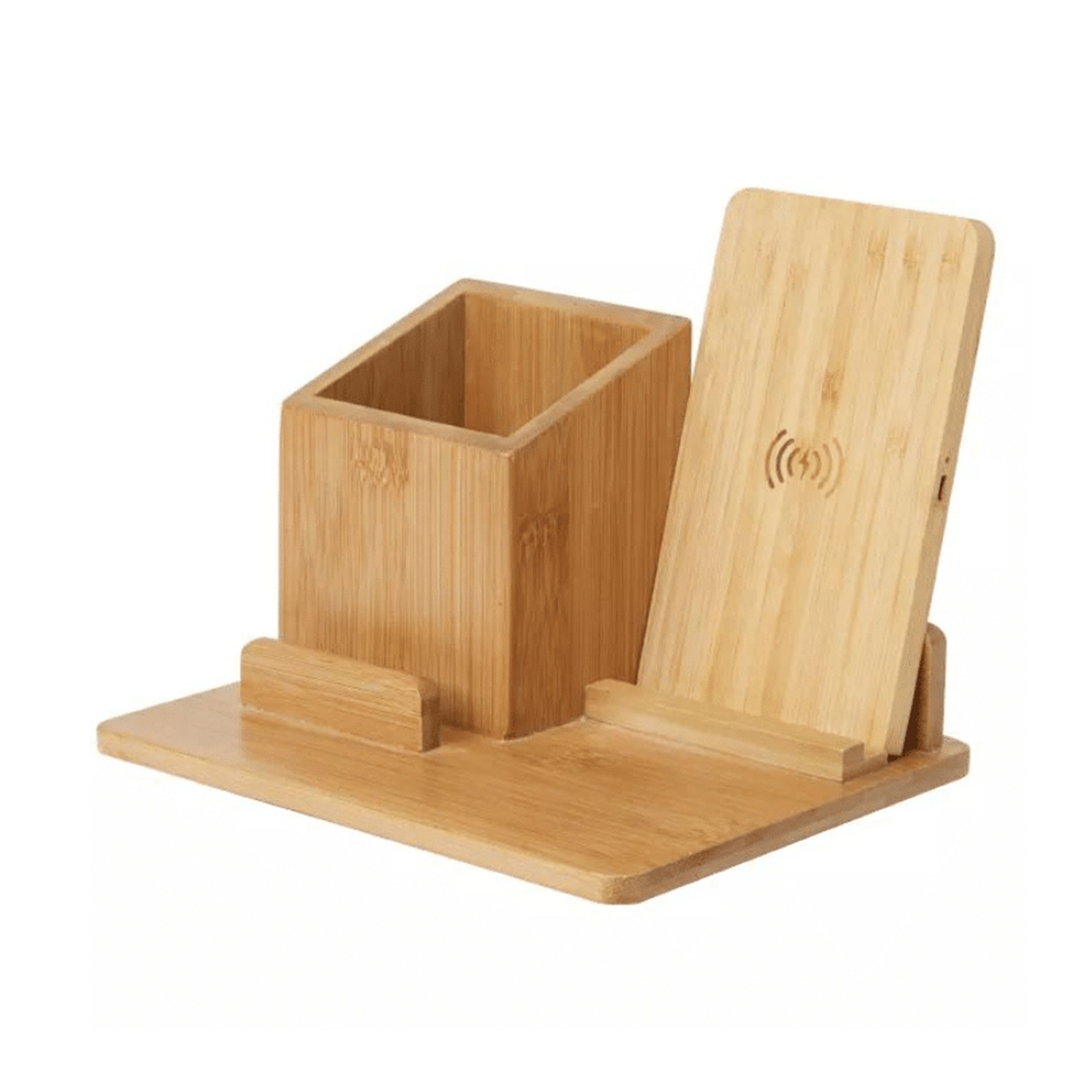 Product : Bamboo QI Fast Wireless Charger Pad with Stationary Organizer