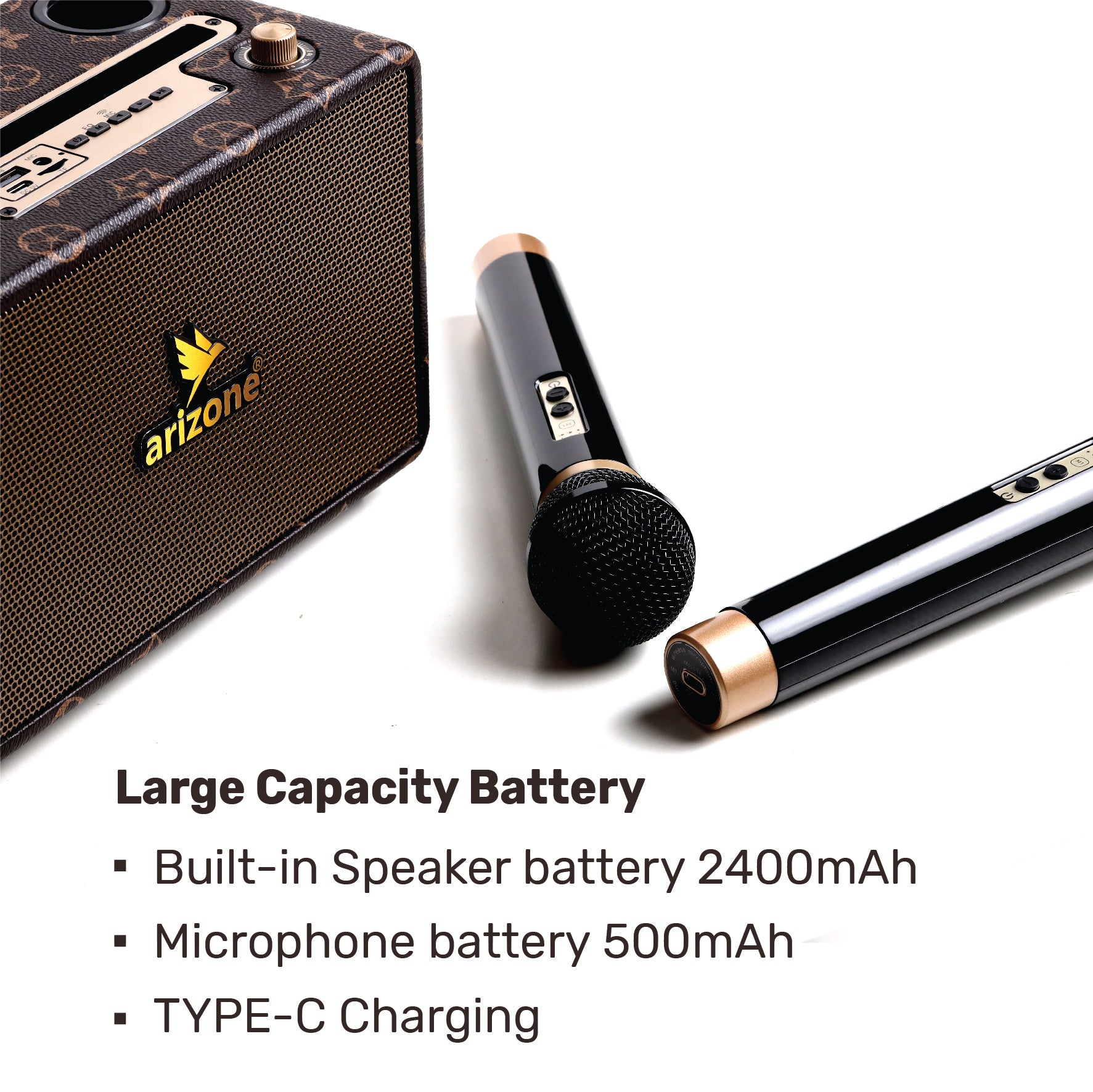 Upgrade your sound experience with the Arizone AS100 Speaker, the best speaker for home entertainment. This wireless Bluetooth speaker doubles as a powerful partybox speaker with speakers with microphone capabilities and delivers rich, high bass audio. Enjoy smart features with this versatile smart speaker, perfect for any occasion.