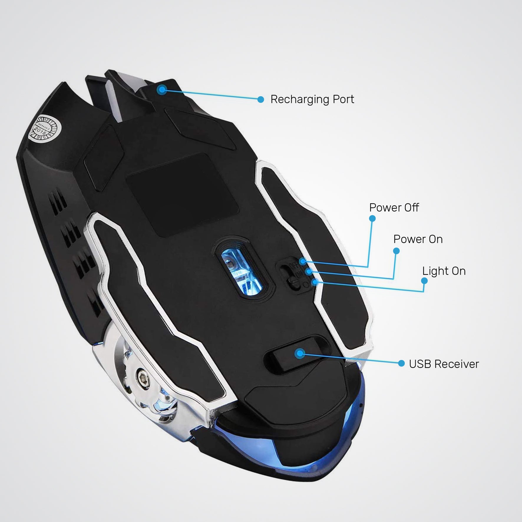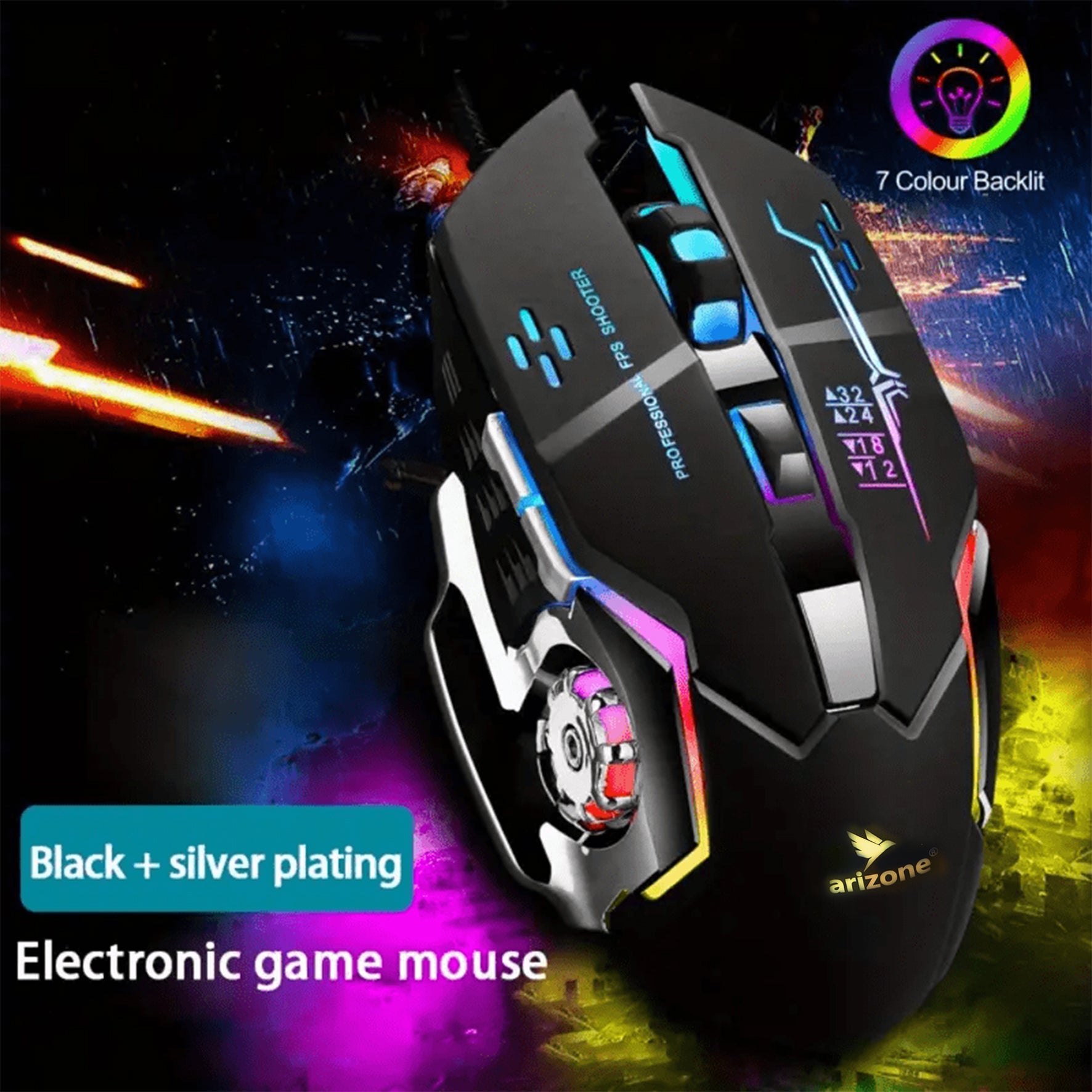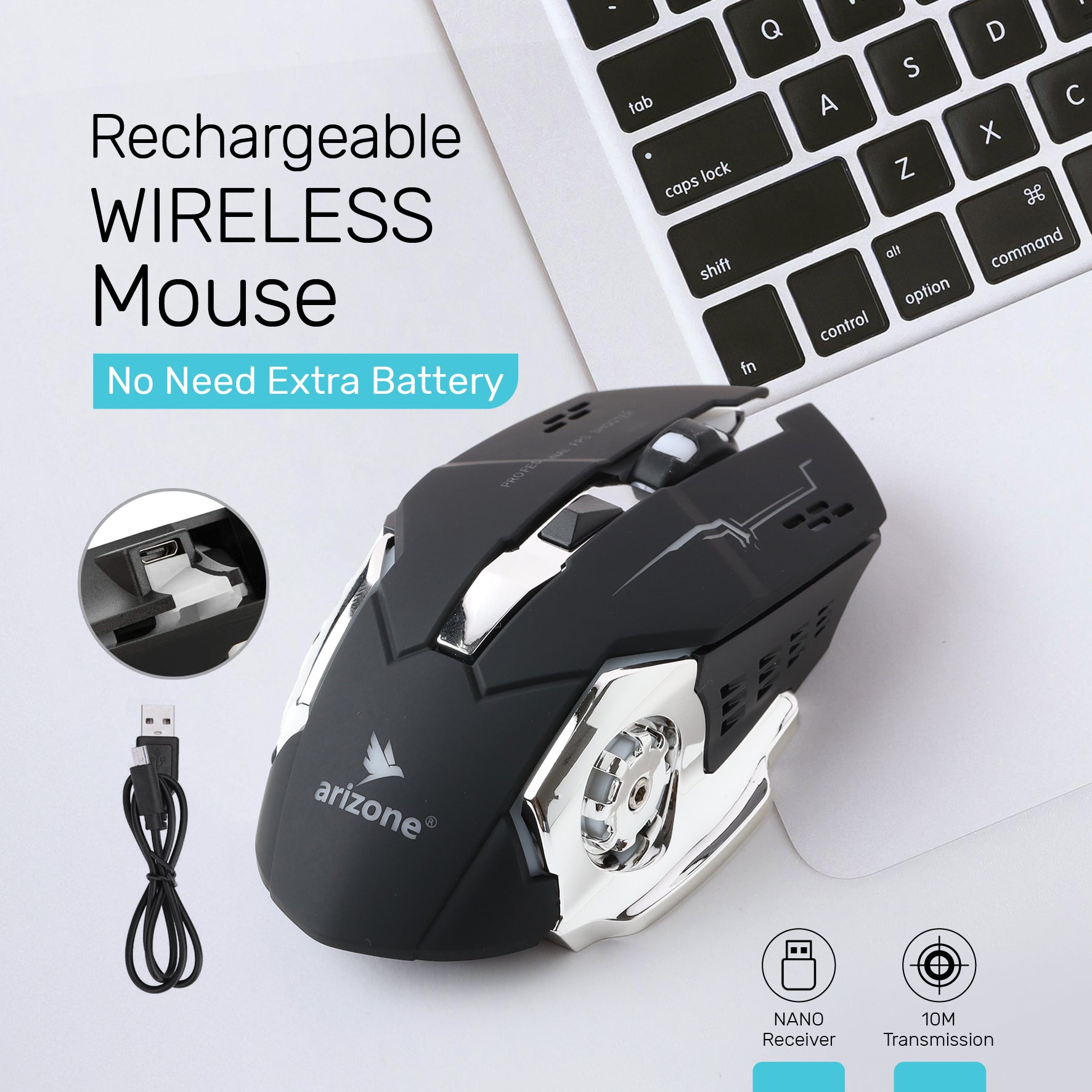 Arizone® G501 Wireless Gaming Mouse with Lights 2.4 Ghz Rechargeable mouse, Durable & Silent Click