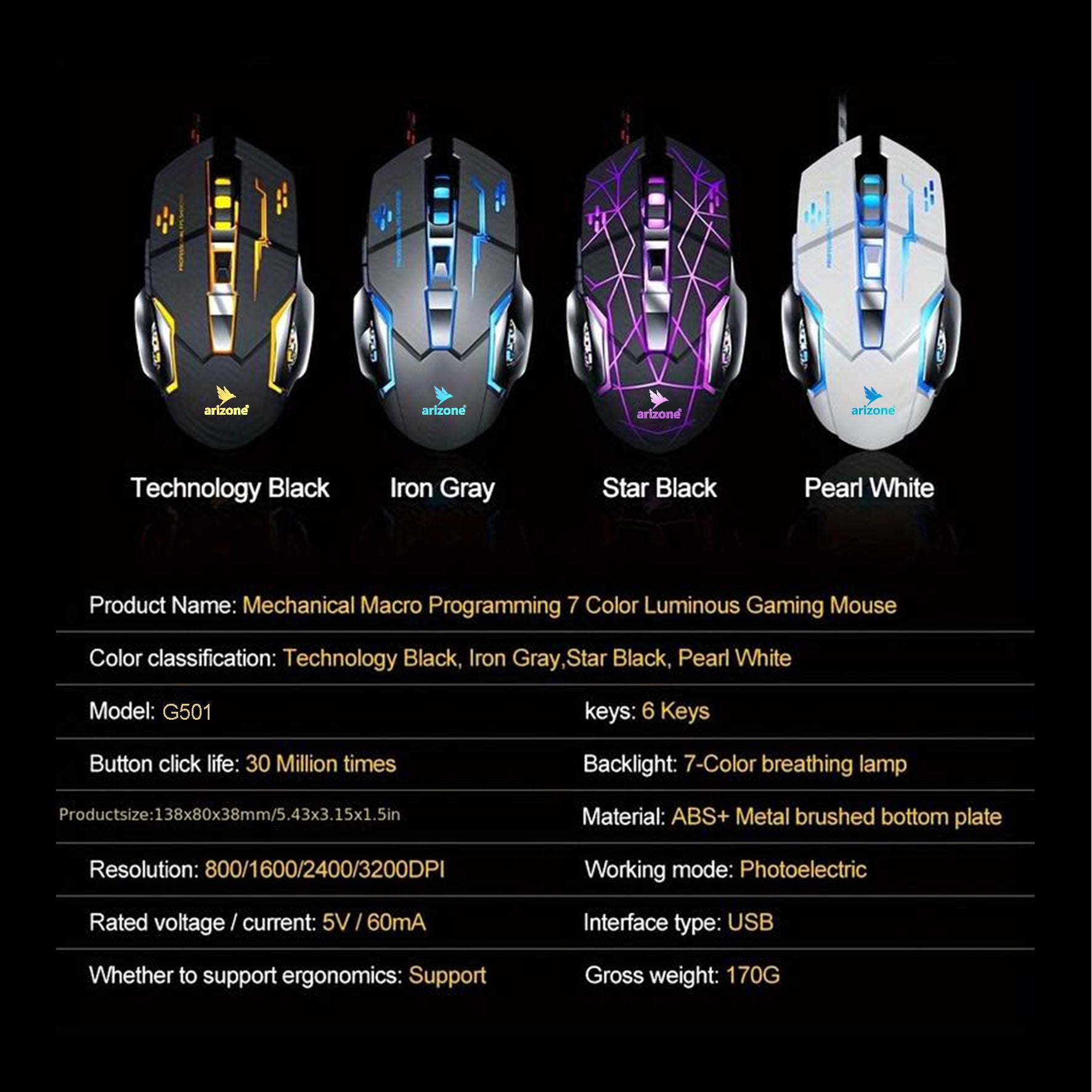 Unleash your gaming potential with the Arizone Wireless Gaming Mouse G501. This high-performance mouse gaming tool offers precision and speed, making it a top choice for any gamer. Complete your setup with this essential computer accessory from Arizone.