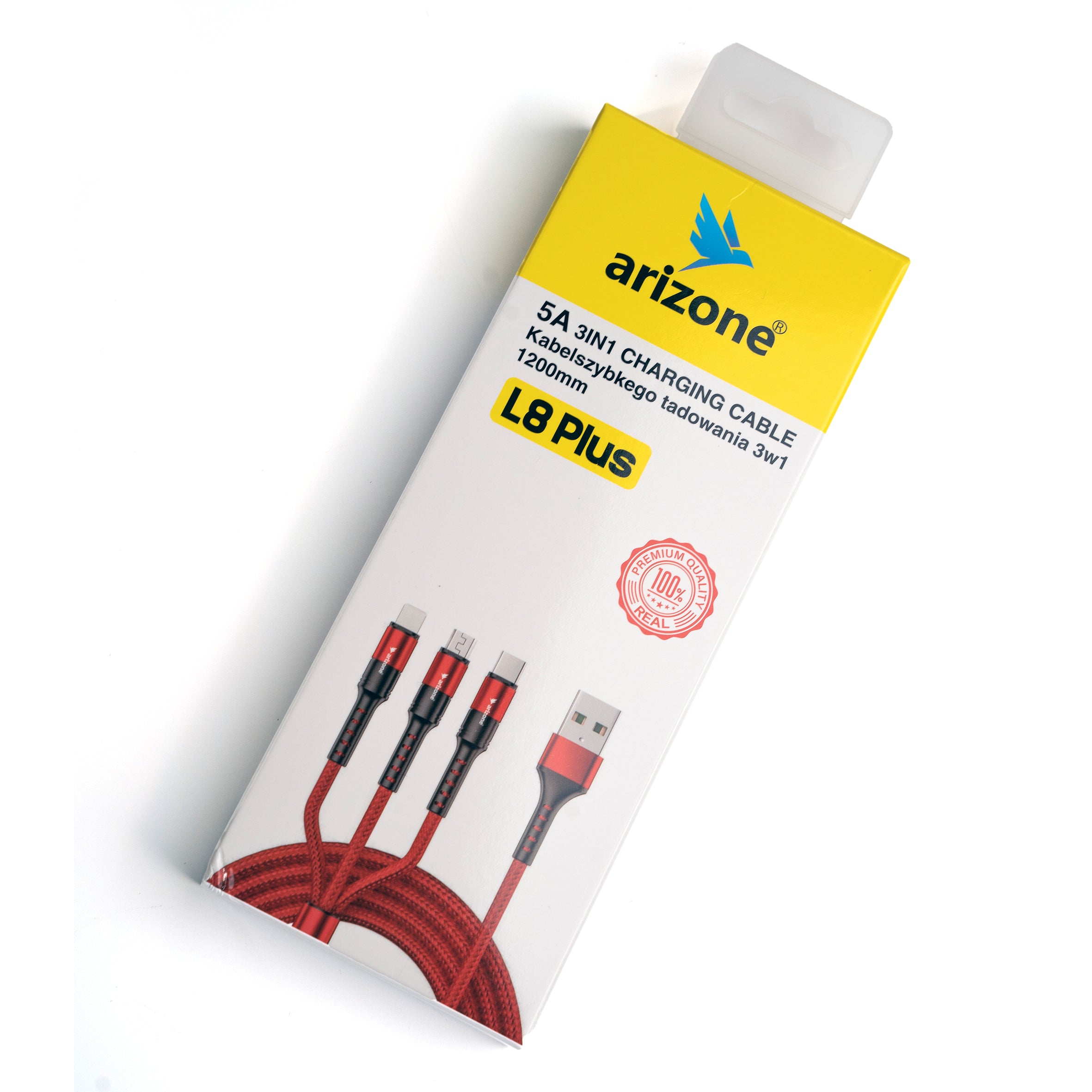 ARIZONE CHARGER CABLE L8 PLUS 3-in-1 5A 120M
