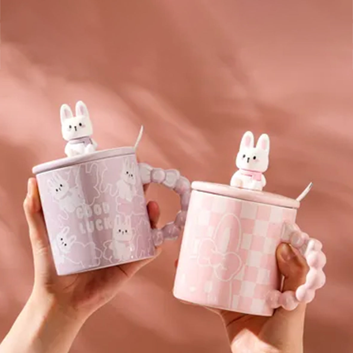 CUTE RABBIT COFFEE MUG WITH LID AND SPOON