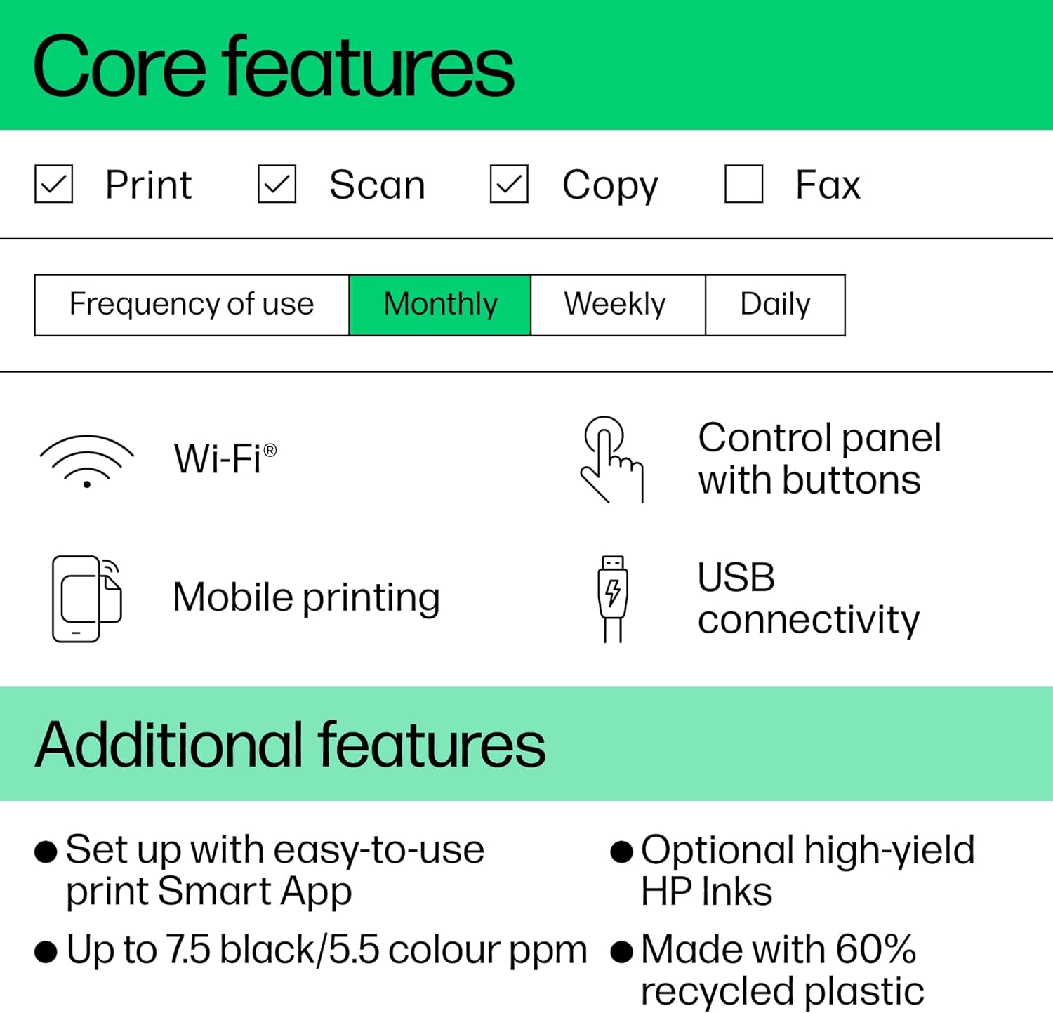 • Rely on high-quality, Original HP inks with high yield for frequent printing at low cost.