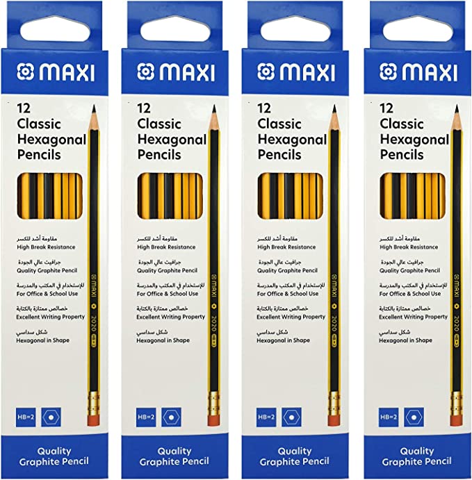 Maxi Classic Hexagonal Graphite Pencil Hb With Rubber Tip 48Pc, Black
